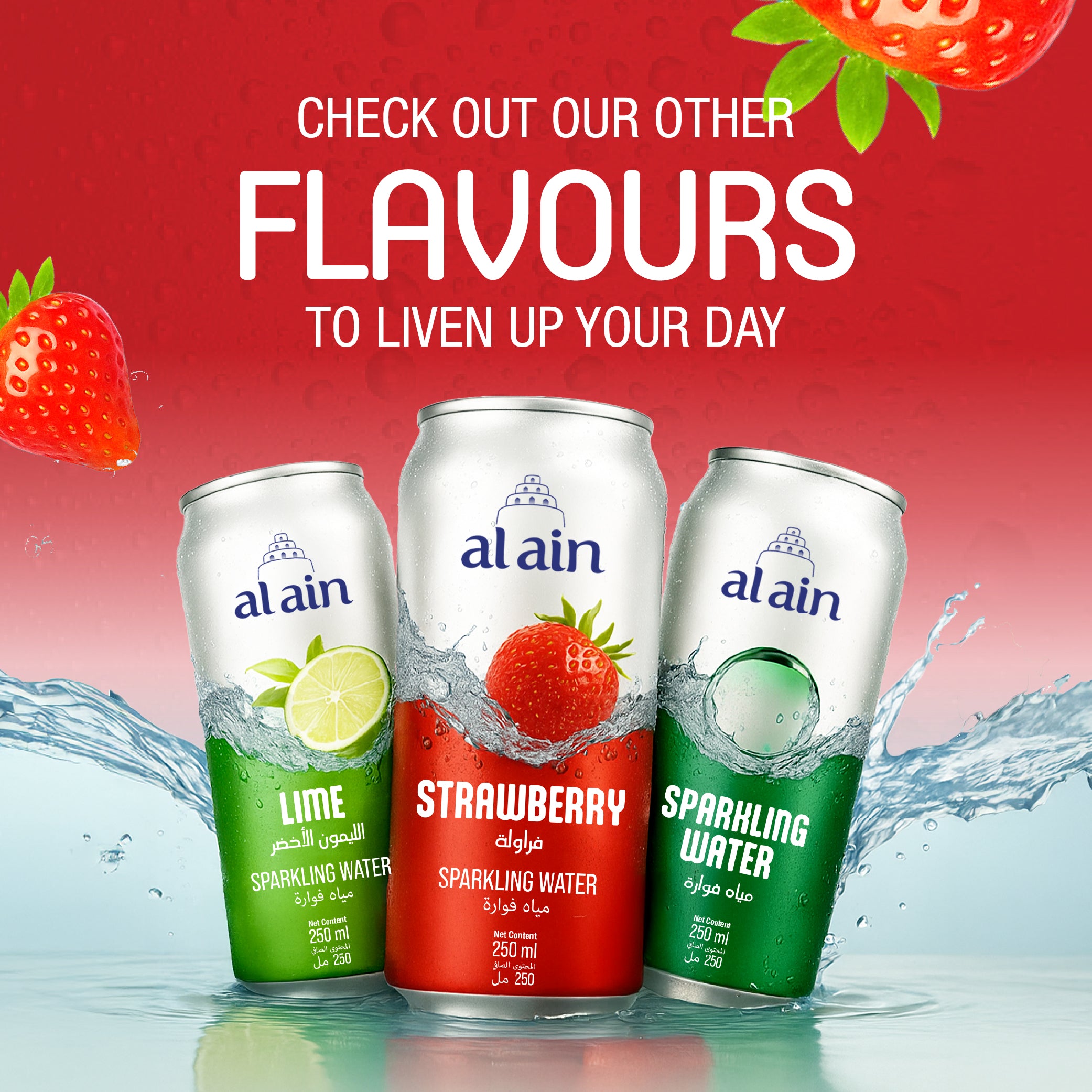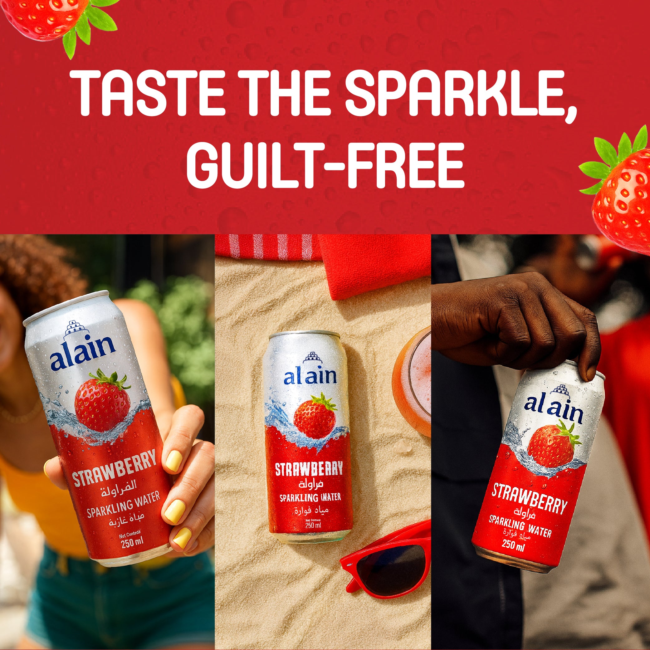 • Trusted Al Ain Quality – UAE’s leading water brand, now available in a sparkling strawberry can.